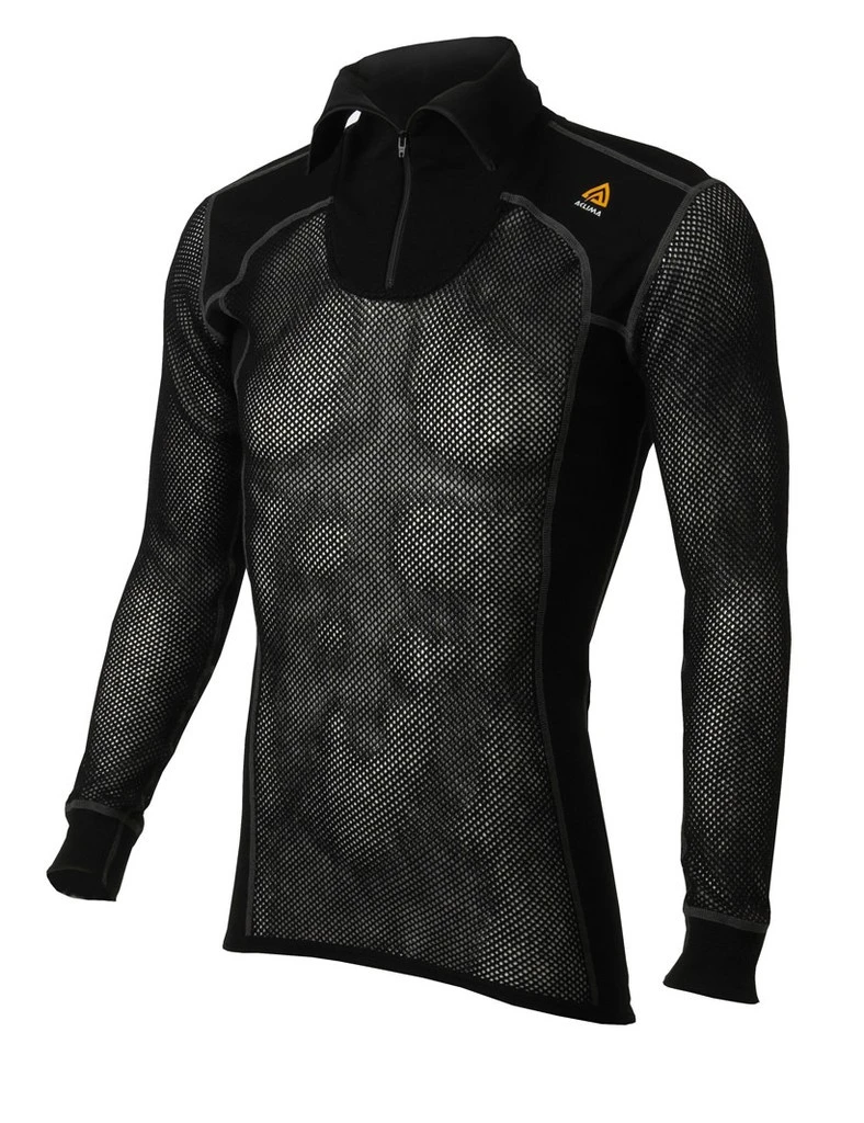 Le t-shirt manches longues en mailles aĂ©rĂ©es WoolNet Polo W/Zip de la marque norvĂ©gienne Aclima, est un sous-vĂȘtement offrant une trĂšs grande respirabilitĂ©, tout en gardant la chaleur prĂšs du corps. RĂ©alisĂ© Ă 91% en laine de mĂ©rinos, il dispose de panneaux latĂ©raux et aux Ă©paules pour assurer le maintien et plus confort lors de portage dâun sac Ă dos. Son col permet dâajuster la rĂ©gulation thermique pendant lâeffort. Il est parfaitement adaptĂ© pour les efforts intenses en hiver.