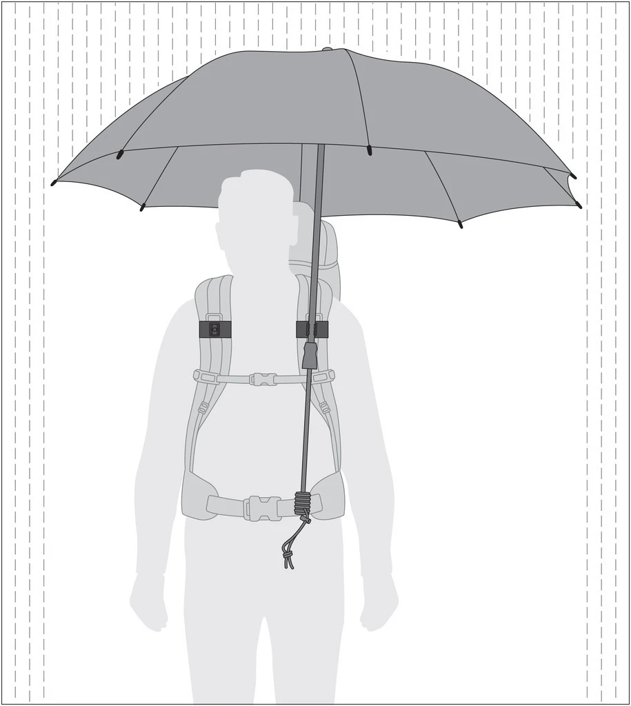 Le Swing Hands Free de la marque allemande EuroSchirm, est un parapluie qui sâattache au sac Ă dos permettant alors de soulager vos bras, de lire une carte ou dâutiliser vos bĂątons de marche en Ă©tant protĂ©ger de la pluie.