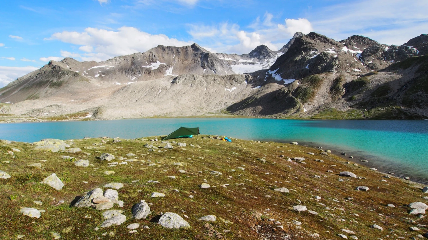 Abri minimaliste aux dimensions généreuses. Bâche à installer avec des bâtons de randonnée ou à tendre entre 2 arbres.
