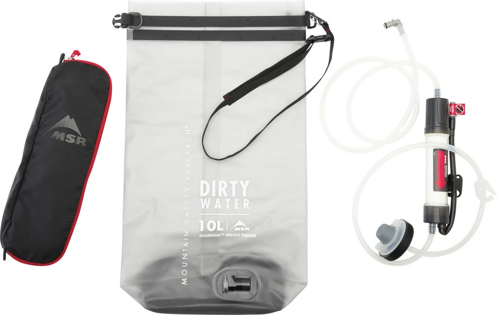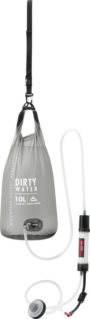Le Guardian Gravity Purifier de MSR est un filtre à eau par gravité. Ce purificateur d’eau est efficace contre les virus. Il vous permet d’approvisionner en eau potable partout sur la planète. Il élimine les virus, bactéries, protozoaires, les sédiments et les microplastiques.