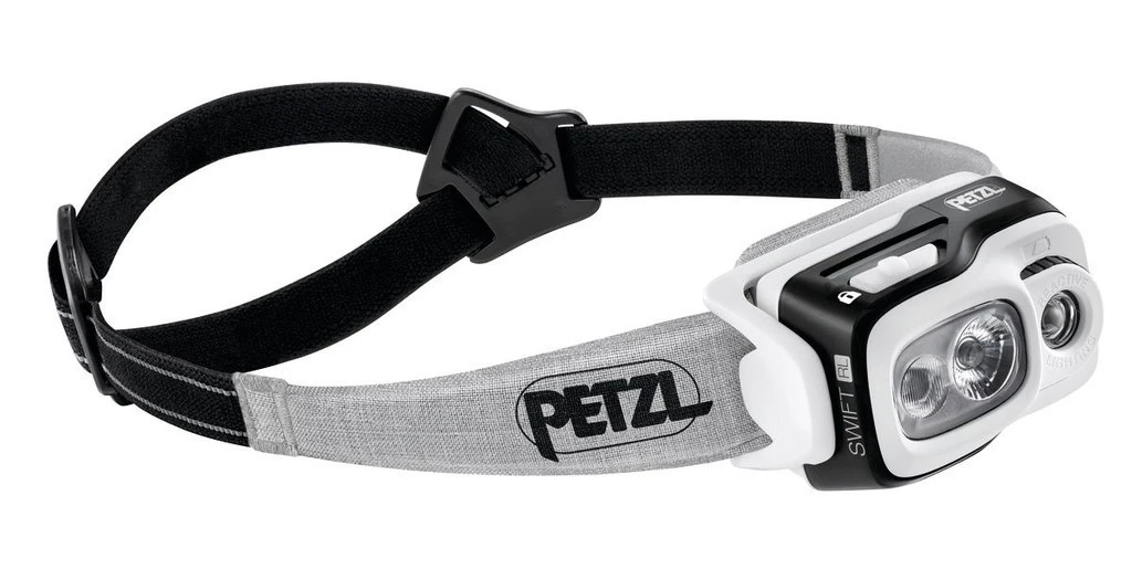 La Swift RL de Petzl est une lampe frontale qui dispose de la technologie Reactive Lighting de la marque. Un capteur évalue la luminosité ambiante et adapte automatiquement la puissance d’éclairage aux besoins de l’utilisateur. En mode Reactive Lighting, elle délivre jusqu’à 900 lumens pendant minimum 2 heures, avec une portée de 150 mètres. En puissance moyenne à 300 lumens, son autonomie passe à 5 heures minimum. Elle dispose également d’un mode Standard Lighting (puissance fixe, sans utilisation du capteur). Chaque mode dispose de 3 niveaux d’intensité d’éclairage.