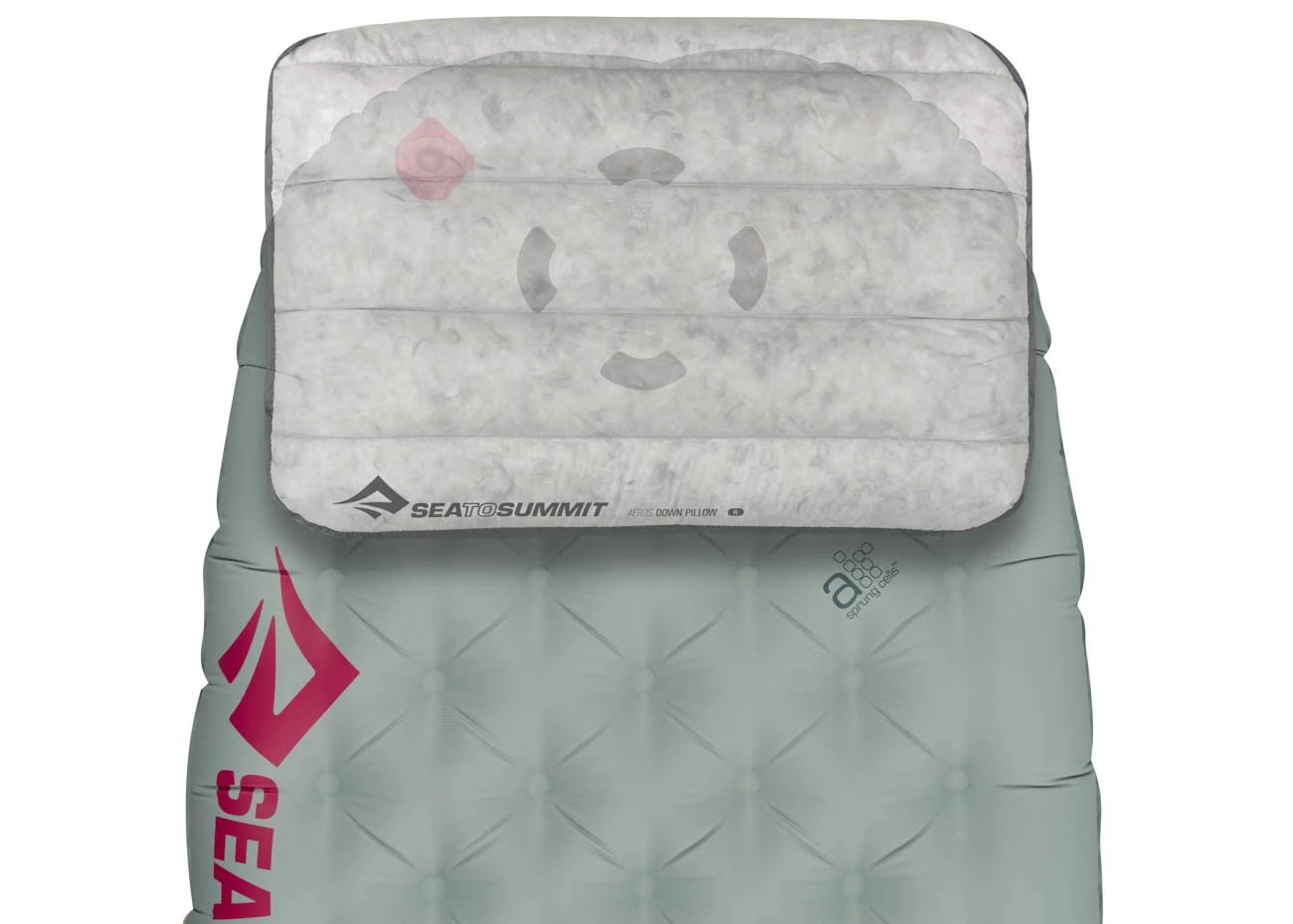 Au niveau de la tĂȘte, lâattache PillowLock permet de fixer un oreiller Aeros Sea to Summit Ă votre matelas pour le tenir en place toute la nuit. (Oreiller vendu sĂ©parĂ©ment).